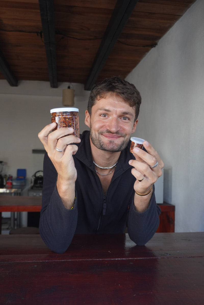 So, we started experimenting. Small batches, endless tweaks. Every hostel kitchen became our test lab, adjusting the heat and flavours - sharing with any locals or travellers willing to try. At the same time, we started our branding and only a month later, had signed off our first design.